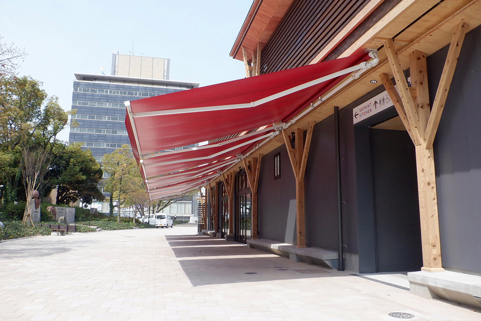 日差しを遮ることで快適な空間を創り出し、屋内の冷房使用頻度を下げ省エネに貢献する環境配慮商品として、商業施設や保育園、レジャー施設から工場、物流施設など、あらゆる場所に応じた多大な商品を取り揃えています。