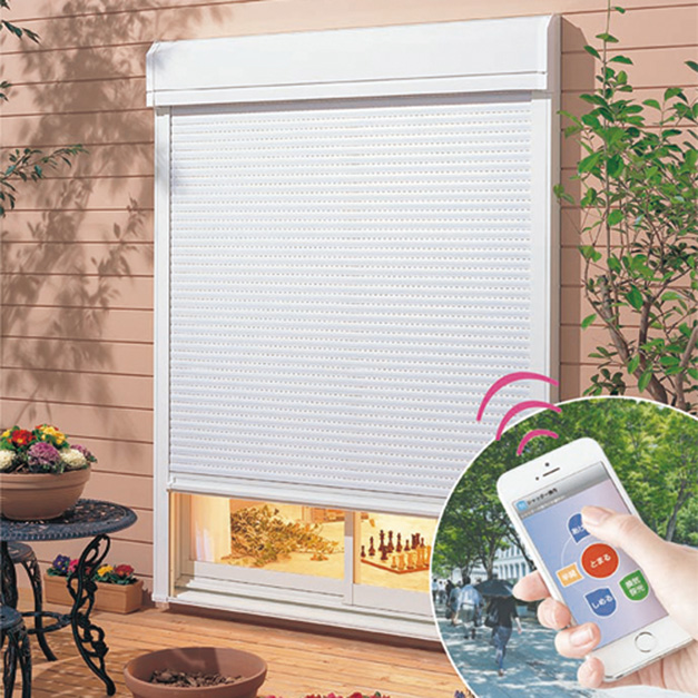 近年増加する勢力の強い台風の被害から住まいを守る高耐風圧モデル。さらに、スマホ操作で開閉できる当社専用アプリケーションに気象警報に連動した自動閉鎖機能を追加。お客様のより安心・安全な暮らしをサポートします。