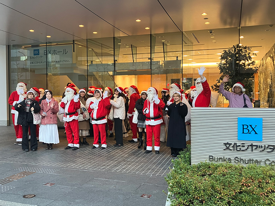 NPO法人チャリティーサンタは、サンタクロースに扮したボランティアが子どもたちにプレゼントを届ける活動を行う団体です。当社では、同団体の文京支部に協力し、ボランティアの拠点としてBXホールを提供しました。当日は、サンタクロース姿のボランティアが地域のご家庭や保育園を訪問し、子どもたちにプレゼントを届けました。また活動を通じて集まったチャリティー金は、困難な環境の子どもたちの支援に活用されています。