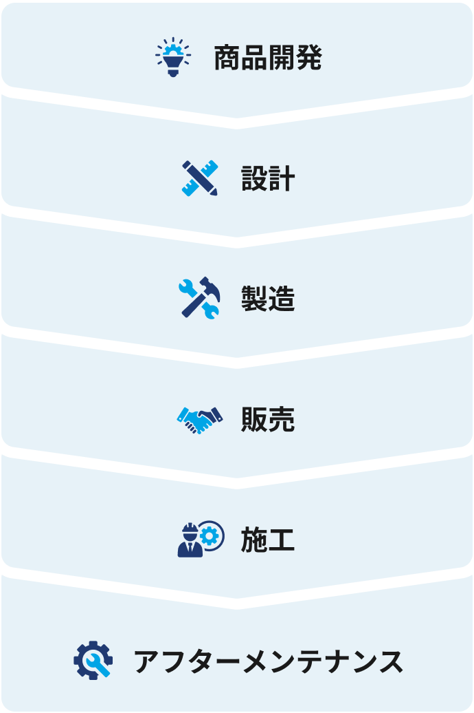 設計された図面をもとに、工場にて高品質な製品を安定して効率よく生産する仕組みを整えます。作業ラインや設備を整え、品質の改善と生産性の向上をめざす、つくる“しくみ”をつくる仕事です。